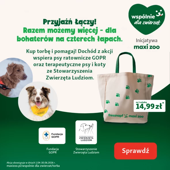 Zwierzęta wzbogacają nasze życie każdego dnia, niektóre z nich robią to w sposób wyjątkowy - ratują ludzi, wspierają w chorobie, dają poczucie bezpieczeństwa i bliskości. To właśnie im poświęcona jest kolejna edycja akcji „Przyjaźń Łączy – Wspólnie dla Zwierząt”, która właśnie wystartowała w Maxi Zoo. Od 1 kwietnia w sklepach sieci można kupić wyjątkowe torby, a dochód z ich sprzedaży zostanie przekazany na rzecz zwierzęcych bohaterów.