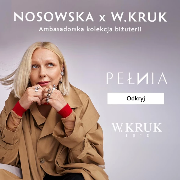 Każdy z nas tworzy własną opowieść, wypełnioną różnorodnymi doświadczeniami, emocjami i wyborami – symbolami unikalności i autentyczności. To wartości, które W.KRUK szczególnie podkreśla w jubileuszowym roku 185-lecia, zapraszając do współpracy Katarzynę Nosowską, ikonę polskiej sceny muzycznej, autorkę tekstów, niepowtarzalną osobowość. Artystka konsekwentnie i niezwykle świadomie łączy rockowe brzmienia z ogromną wrażliwością. Wyrażając słowami najgłębsze emocje, tworzy ponadczasowe utwory, które towarzyszą na różnych etapach życia, łącząc pokolenia. Ambasadorska kolekcja biżuterii NOSOWSKA x W.KRUK jest odniesieniem do osobistego, a zarazem uniwersalnego procesu zrozumienia i wewnętrznej akceptacji.