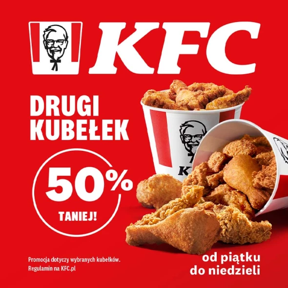 Teraz od piątku do niedzieli w KFC drugi kubełek 50% taniej!