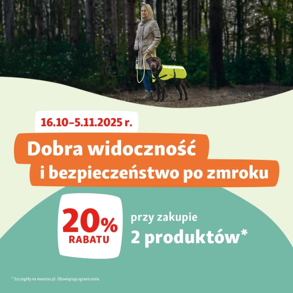 W sklepach stacjonarnych Maxi Zoo i na stronie maxizoo.pl dostępny jest szeroki wybór akcesoriów zwiększających bezpieczeństwo po zmroku, od obroży i szelek z odblaskami, przez kamizelki i ubranka, po lampki LED i świecące zawieszki. Od 16 października do 5 listopada klienci mogą skorzystać także z 20% rabatu przy zakupie 2 produktów w ramach oferty „Dobra widoczność i bezpieczeństwo po zmroku”.