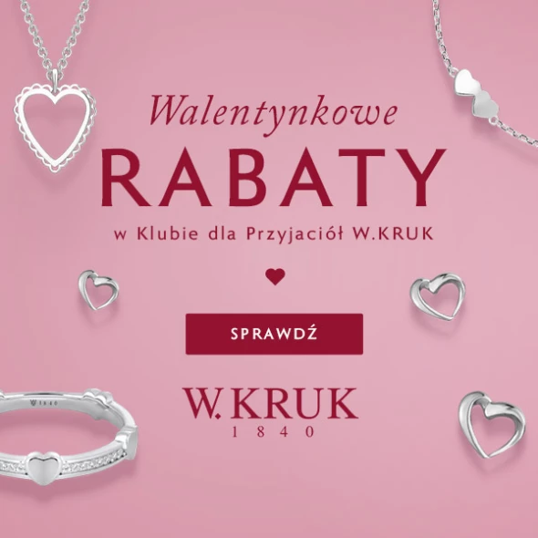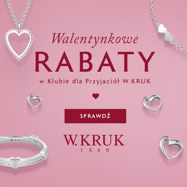 Promocja skierowana do nowych i obecnych Członków Klubu dla Przyjaciół W.KRUK. Oferta obowiązuje od 16.01.2026 do 16.02.2026. Rabat naliczany jest od cen regularnych i nie łączy się z innymi promocjami. Szczegóły i wykluczenia dostępne w salonach i w regulaminie na wkruk.pl